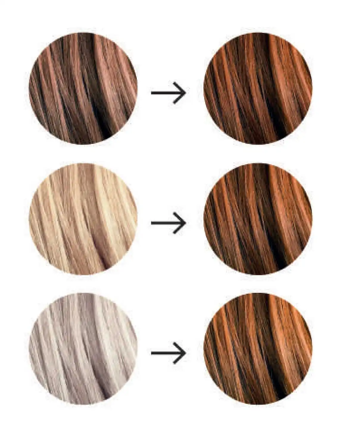 Un cuivré doré qui rehausse la couleur naturelle de vos cheveux, qui apporte éclat et brillance.